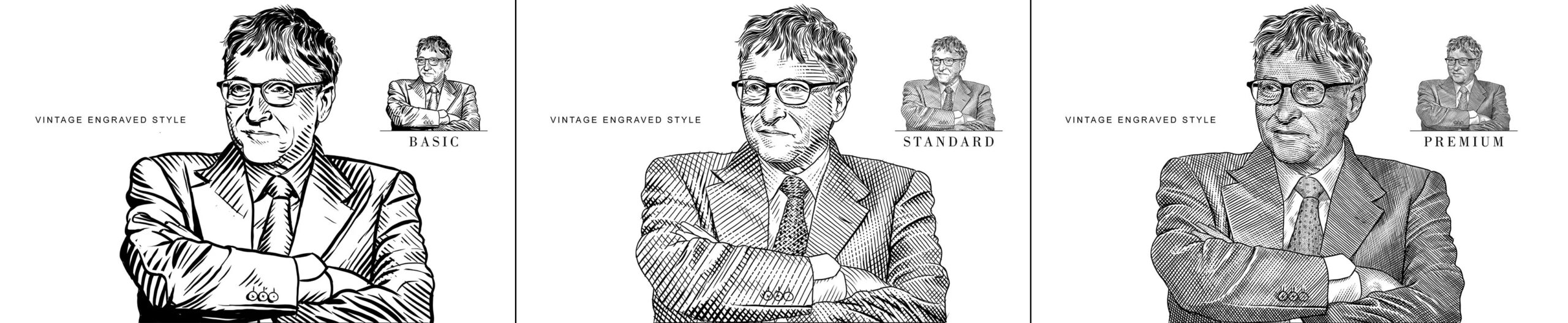 The WSJ style stands out for its distinctive charm—much like the engraved look, it’s especially striking in print, yet retains its elegance on screen. Offered in a single, versatile dot density that suits a wide range of portraits.